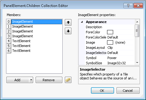 - Click OK to save and close the PanelElement.Children Collection Editor
