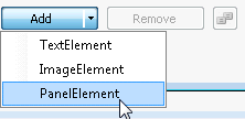 Click the dropdown arrow next to the Add button to add a PanelElement.