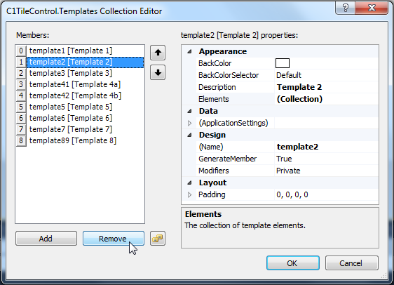 - Right-click on the C1TileControl and select Edit Templates. The C1TileControl.Templates Collection Editor appears.