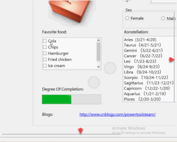 The Horizontal/Vertical bars appear when you scroll by touch. The Scroll Indicator is indicated by a red triangle like shown below: