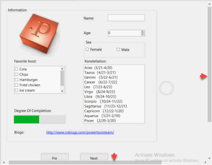 To show Scrollbars instead of the Scroll Indicator, set the C1ZoomScrollIndicatorMode property to ScrollBar.