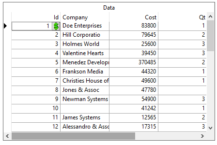 True DBGrid for WinForms supports a variety of in-cell button options for the current cell or for all cells within specified columns. Use in-cell buttons to indicate that a list of choices is available, to perform a command associated with the contents of the cell, or to display an arbitrary control or form for editing.