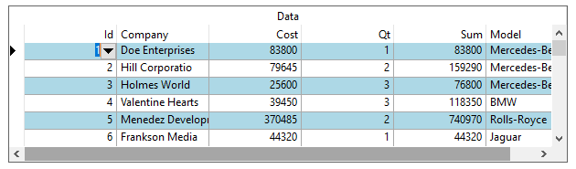 The readability of the display can often be improved by alternating the background colors of adjacent rows. When the AlternatingRows property to True is set, the grid displays odd-numbered rows (the first displayed row is 1) using the built-in style OddRow, and even-numbered rows using the built-in style EvenRow.