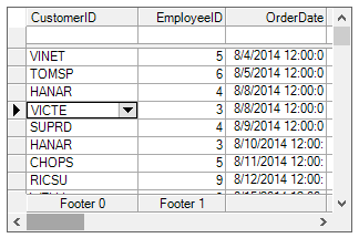 Just as the ColumnHeaders property controls the display of column captions, the ColumnFooters property controls the display of the column footer row. Column footers, which are similar in appearance to column headers, are always displayed at the bottom of the grid, even if it is under populated.