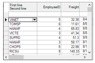 The split specific property ColumnCaptionHeight property controls the height of the column headers. By default, it is based upon the font setting of the HeadingStyle. To display more than one line of text in a column header, increase the ColumnCaptionHeight property to accommodate additional lines, as in the following example: