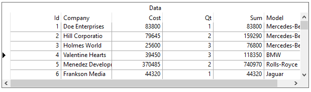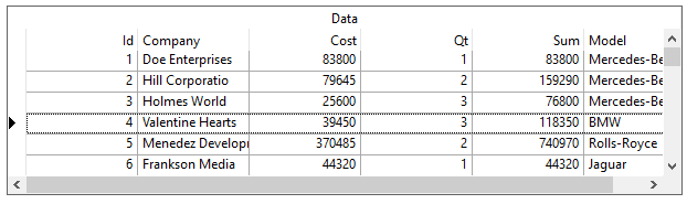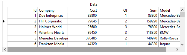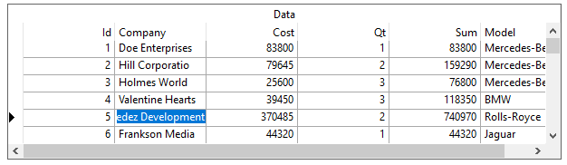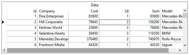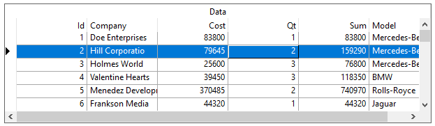 The term marquee refers to the highlighted area that represents the current grid cell or row. The MarqueeStyle property can be set to several possible presentations, all enumerations of the MarqueeEnum object, illustrated as follows.