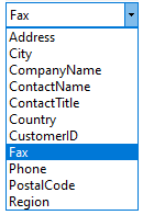 The drop-down box sets which column receives focus. By choosing a column from the drop-down list, the associated properties for this column will appear in the property grid to the left. | |