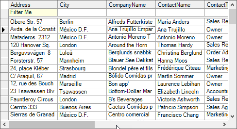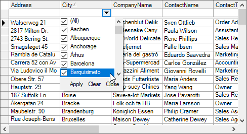 You can now easily filter the grid with multiple filter criteria at run time. For example, you can filter the grid so that only items starting with the letter A or the letter B appear in the grid (instead of limiting the filter to one or the other). All you need to do to have text appear in the filter bar is set the FilterMultiSelect property to True.