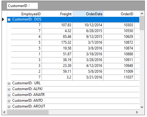 Finally, to keep the CustomerID column visible after grouping by it, set the ColumnVisible property to True.