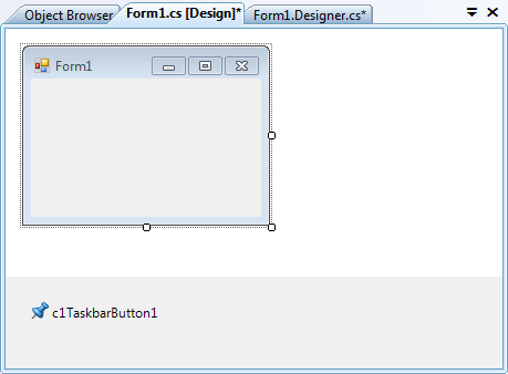 - Navigate to the Toolbox and double-click the C1TaskbarButton item to add it to the application. The C1TaskbarButton component will appear in the component tray below the form.