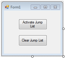 In Design view, double-click the Activate Jump List button to add the button1_Click event handler and then add the following code to it: