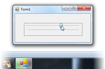 Press F5 to run the application and slide the track bar. Observe that the progress indicator on the taskbar button advances as you slide the track bar.