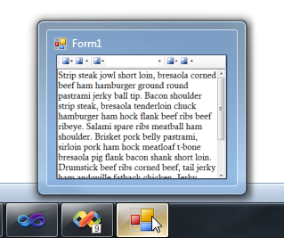 As long as the user has the thumbnail preview feature activated in Windows 7, a live preview of the entire application window will appear in the thumbnail preview.