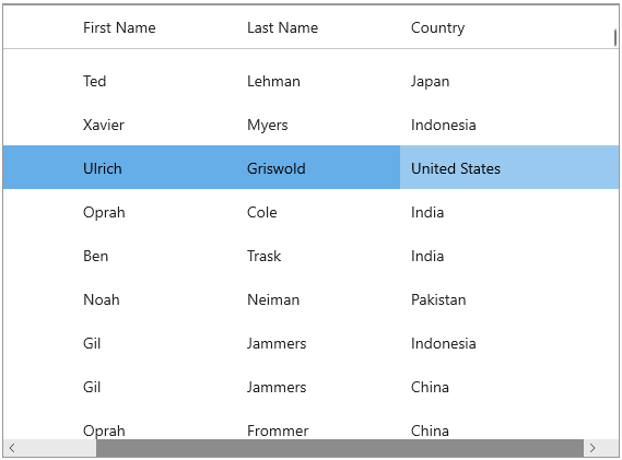Further, you can bind a list of customer objects and customize automatically created columns using code, or disable automatic column generation altogether and create custom columns through code as given below: