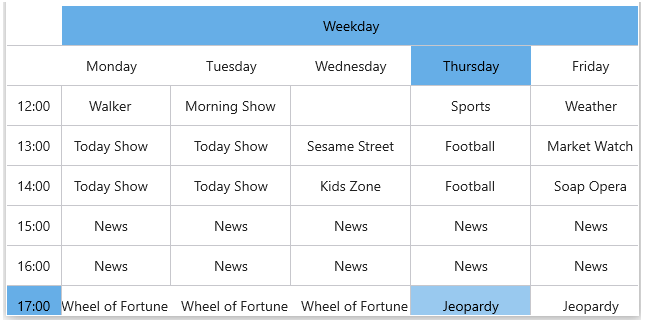 Merging the header cells, specially in case of multi-row header is another very common scenario used in grids and tables. To merge the header cells, you must set the AllowMerging property to AllHeaders.