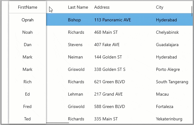 FlexGrid, by default, allows user to reorder rows and columns by dragging a row/column header and dropping it to the target position. However, you can change this behavior by using the C1GridControl class, which provides the AllowDragging property to set a value that indicates whether users are allowed to move rows and columns to new positions. The GridAllowDragging enumeration specifies which grid elements can be moved to new positions with drag. This enumeration provides the Columns property, with which the user can drag columns to new positions.