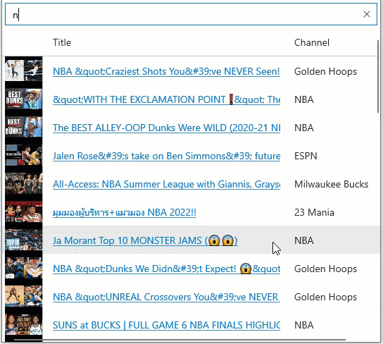 Add the following XAML code in the page to search a video from YouTube using on-demand loading in FlexGrid.