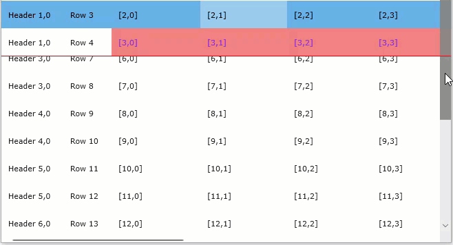 You can also set the FrozenLinesBrush property to paint lines between frozen and scrollable areas of the grid.