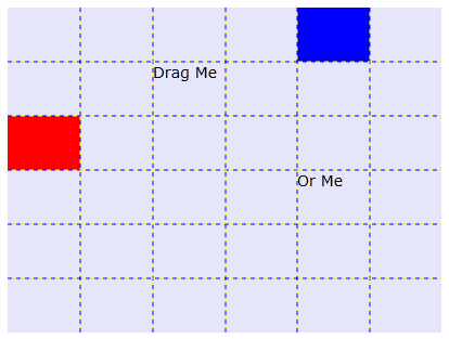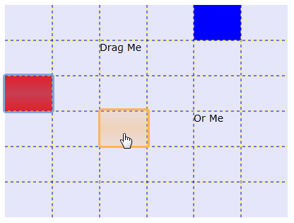 Click the red Rectangle and drag it to another square in the grid. Notice that as the drag process is in action an extra border appears around the item you are dragging and a transparent rectangle is moved with the mouse to indicate where the item will be dropped: