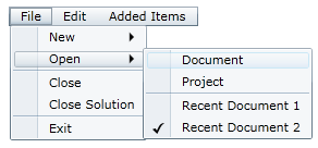 The two checkable items, Recent Document 1 and Recent Document 2, are grouped together to form a list of mutually exclusive checkable items. You can read more about this by visiting the Checkable Menu Items topic.