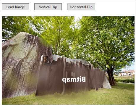 The following code illustrates flipping an image vertically or horizontally on button clicks. This example uses the sample created in the Quick start section.