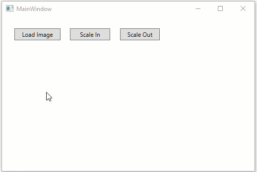 The following code illustrates scaling in and scaling out an image on button clicks. This example uses the sample created in the Quick start.