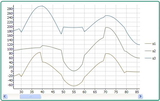 In circumstances when you have a substantial amount of X-values or Y-values in your chart data, you can add an AxisScrollBar control to the axes on your chart. Adding a scrollbar can make the data on the chart easier to read by scrolling through it so you can closely view pieces of data one at a time. The following image has the ScrollBar set to the View.AxisX.Value property.