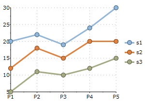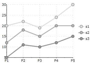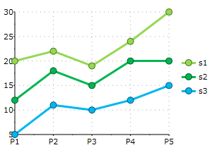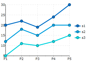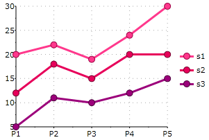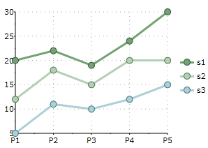 The data series color scheme can be selected by using the Palette property. By default, C1Chart uses the ColorGeneration.Default setting. The remaining options mimic the color themes of Microsoft Office.