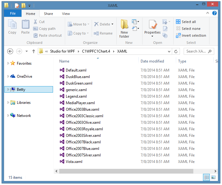 Several auxiliary XAML elements are installed with Chart for WPF. These elements include templates and themes and are located in the Chart for WPF installation directory, by default C:\Program Files\ComponentOne\WPF Edition\C1WPFChart\XAML. You can incorporate these elements into your project, for example, to create your own theme based on the included Office 2007 themes. For more information about the built-in themes some of these elements represent, see Chart Themes.