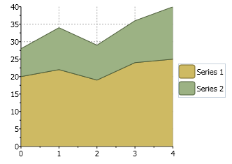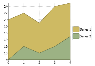 An Area chart draws each series as connected points of data, filled below the points. Each series is drawn on top of the preceding series. The series can be drawn independently or stacked. In WPF, you can also create 3D Area charts. Chart for WPF and Silverlight supports the following types of Area charts: