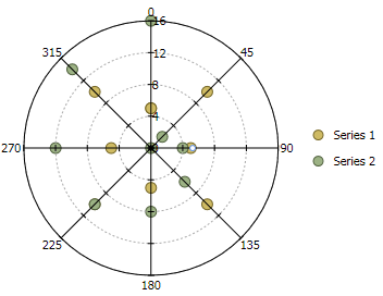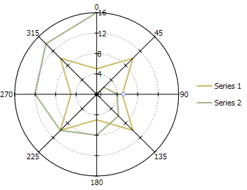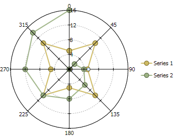 A Polar chart draws the x and y coordinates in each series as (theta,r).