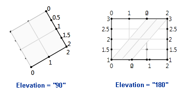 You can easily create a flat 3D chart, such as a heat map, by changing the Elevation property of a chart. Each chart has an elevation angle, or an incline above the X-axis. When you first add a chart to the window, the elevation angle is 150 degrees, by default. You can flatten the chart by setting the Elevation property to 90 or 180, depending on how you want to flatten it with respect to the X-axis.