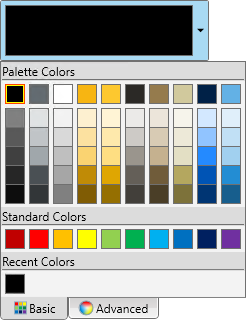 ColorPicker for WPF includes over 20 predefined color palettes that match the themes used in Microsoft Office, but if you choose you can create your own custom color palette rather than using a predefined one. In the following steps you'll create a custom palette, and when a button is pressed, apply that palette to the C1ColorPicker control.