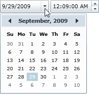 DateTimeEditors for WPF includes the C1DateTimePicker control, a simple control which provides, by default, both a date picker and a time picker. When you add the C1DateTimePicker control to a XAML window, it exists as a completely functional date and time picker. By default, the control's interface looks similar to the following image: