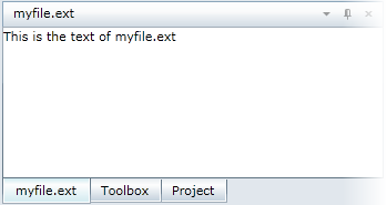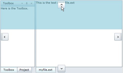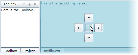 Using the previous image's example, if the mouse is released over the center indicator, the myfile.ext C1DockTabItem will appear with the other C1DockTabItems in the first C1DockTabControl.