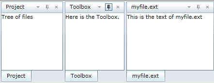 DockControl for WPF provides four DockMode options: Floating, Docked, Sliding, and Hidden. The following images show each of the docking options available in the drop-down list of the C1DockTabControl.