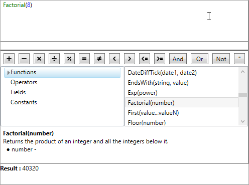 ExpressionItem factItem = new ExpressionItem("Factorial", "Factorial()",