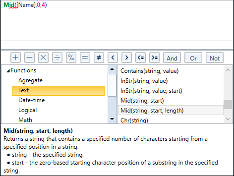 The following topics help you get accustomed with the Expression Editor control, and explore its advanced capabilities.