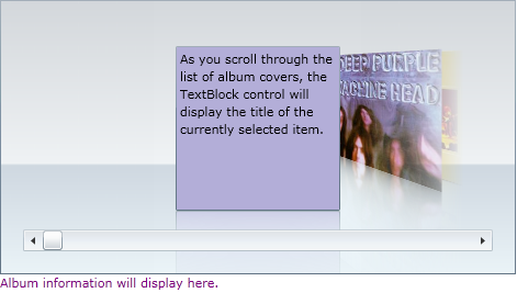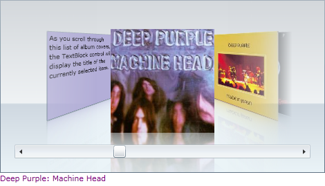 In the previous four steps, you created a project with a StackPanel, C1CoverFlow, and TextBlock controls, set the controls’ properties, added items to the C1CoverFlow control, and added code to your project. All that’s left for you to do now is run the project.