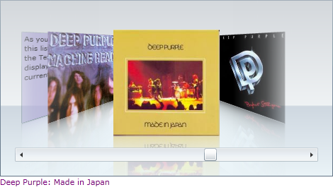 Congratulations! You have completed the CoverFlow for Silverlight quick start. To learn more about the control, visit the C1CoverFlow Control Basics and CoverFlow for Silverlight Task-Based Help topics.