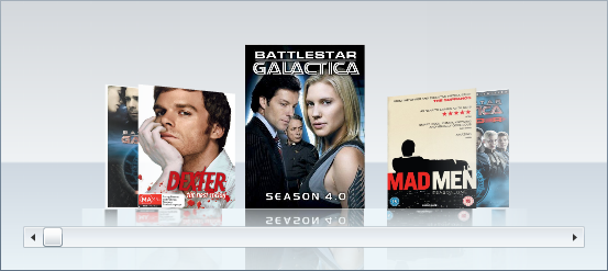 The following image demonstrates a C1CoverFlow control with its ItemAngle property set to 15.