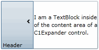 The C1Expander control includes the option to specify the expand direction using the C1Expander.ExpandDirection property. In addition to setting how the direction the control expands, changing the ExpandDirection also changes the header's orientation to the content area of the control. By default the ExpandDirection property is set to Down and the control expands from top to bottom.
