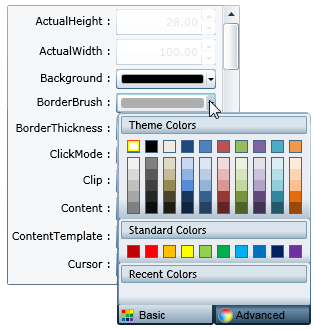 BrushEditor | Default editor used by C1PropertyGrid to edit Brush values. |