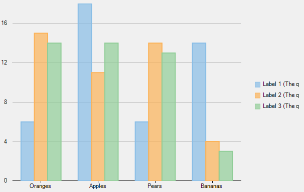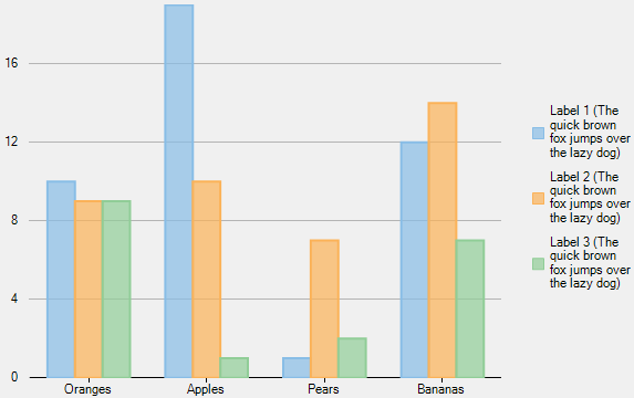 The following code compares fruit data for three consecutive months. The code shows how to implement legend text wrapping in FlexChart.