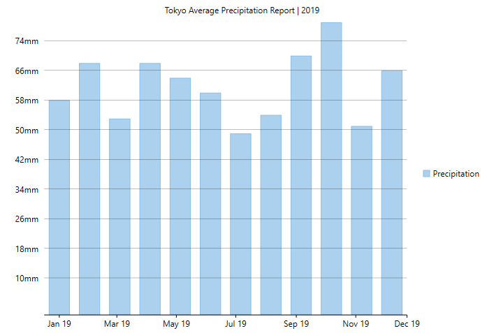 BindingX="Date" Header="Tokyo Average Precipitation Report | 2019">