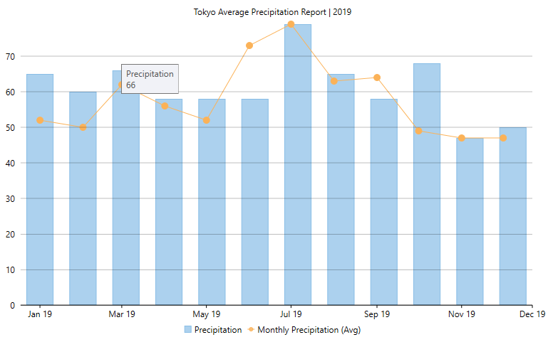 Binding="Precipitation" BindingX="Date" Header="Tokyo Average Precipitation Report | 2019">