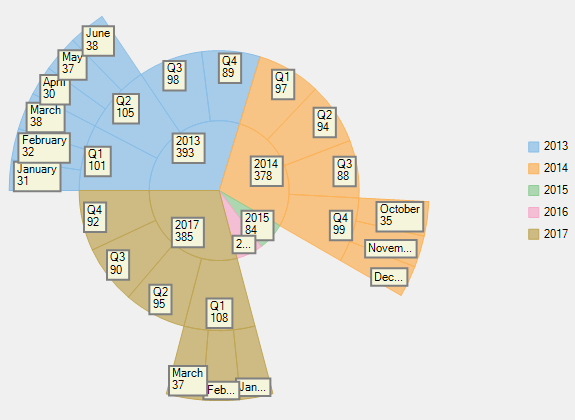 The following image shows how Sunburst appears after setting the Overlapping property.