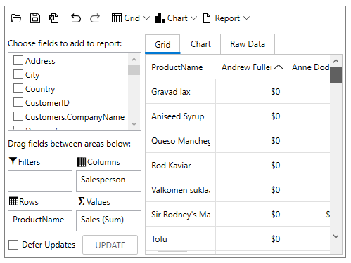 By default, data appearing in output grids are sorted by key. For example, the Country column in the FlexPivotGrid control appears sorted alphabetically. However, you may prefer a different data presentation and sort the grid by value fields such as Unit Price, Extended Price or Discount.