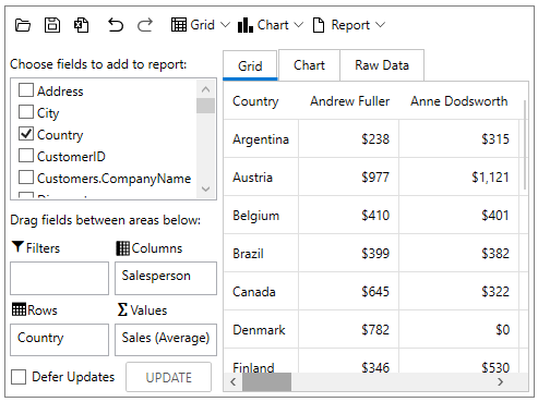 FlexPivot control allows users to display subtotals using various aggregate functions such as Sum, Count, Average, etc.