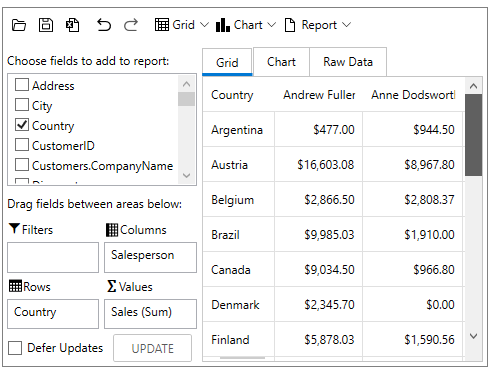 To apply conditional formatting to the FlexPivotGrid cells, follow the steps given below. This implementation uses the sample created in Quick Start topic.